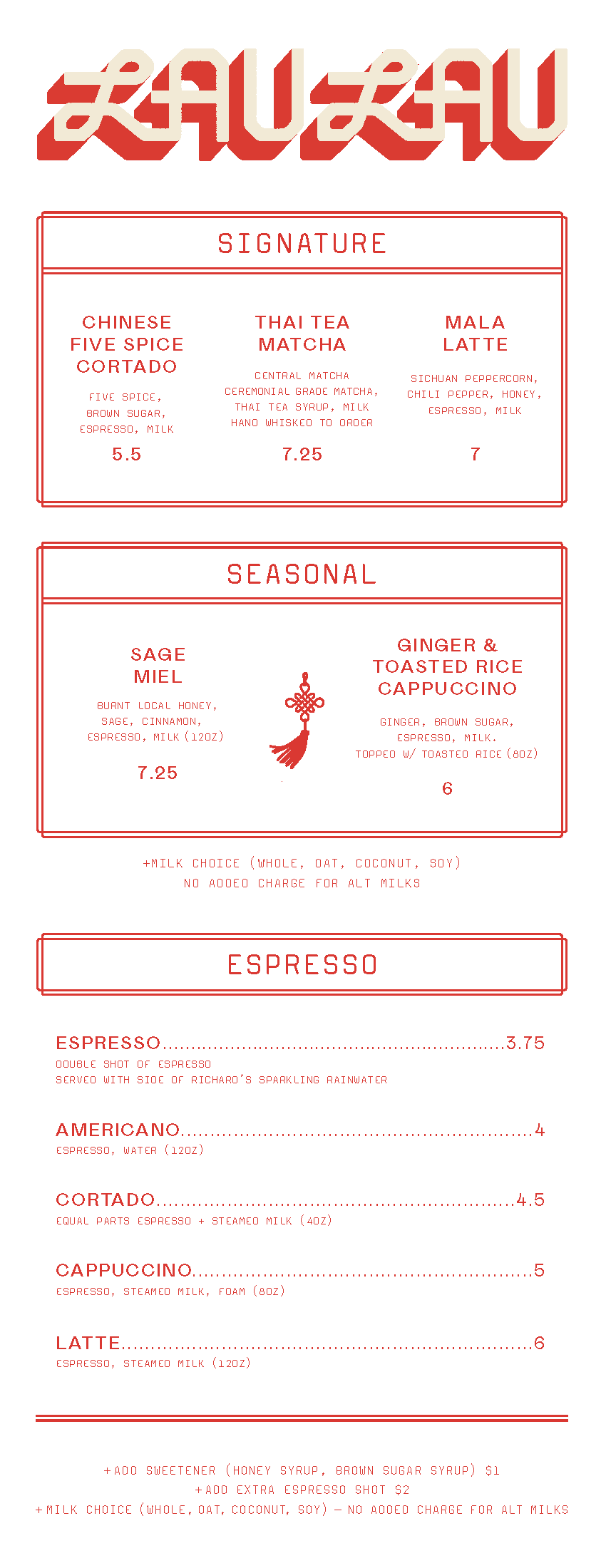 * subject to change due to seasonal menu changes and availability